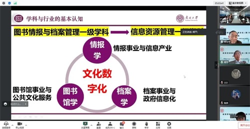 主講嘉賓賴茂生教授作了題為“數(shù)智時(shí)代的信息資源管理”的學(xué)術(shù)報(bào)告,介紹了不同時(shí)期的信息資源管理,信息資源管理的學(xué)科性質(zhì)、主要特征、內(nèi)容范圍、應(yīng)用領(lǐng)域和分支學(xué)科。