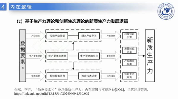丁敬達教授探討了“數(shù)據(jù)要素驅動新質生產(chǎn)力發(fā)展路徑”,圍繞“什么樣的數(shù)據(jù)可以稱為生產(chǎn)要素”、“國家領導人為什么使用新質生產(chǎn)力這一個概念”、“數(shù)據(jù)要素和新質生產(chǎn)力有什么邏輯關聯(lián)”展開詳細的報告,提出數(shù)據(jù)要素推動新質生產(chǎn)力發(fā)展的對策和路徑。