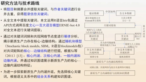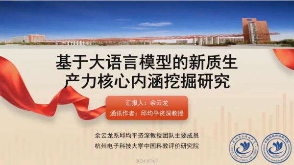 中國科教評(píng)價(jià)研究院助理研究員余云龍博士以“基于大語言模型的新質(zhì)生產(chǎn)力核心內(nèi)涵挖掘研究”為題,收集現(xiàn)有關(guān)于新質(zhì)生產(chǎn)力的文獻(xiàn),運(yùn)用大語言模型對(duì)相關(guān)文獻(xiàn)的全文本進(jìn)行深度挖掘,揭示不同領(lǐng)域新質(zhì)生產(chǎn)力的內(nèi)涵特征與結(jié)構(gòu),掌握其核心內(nèi)涵要義。