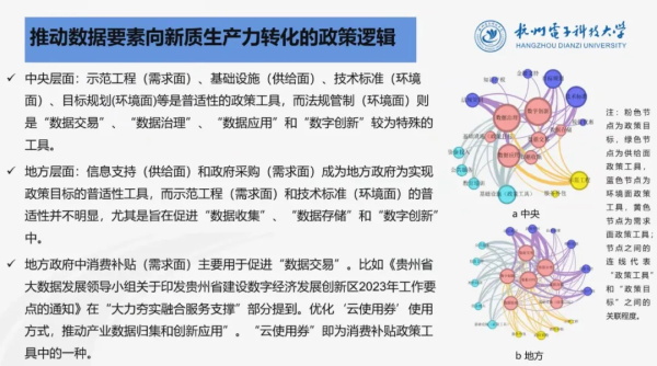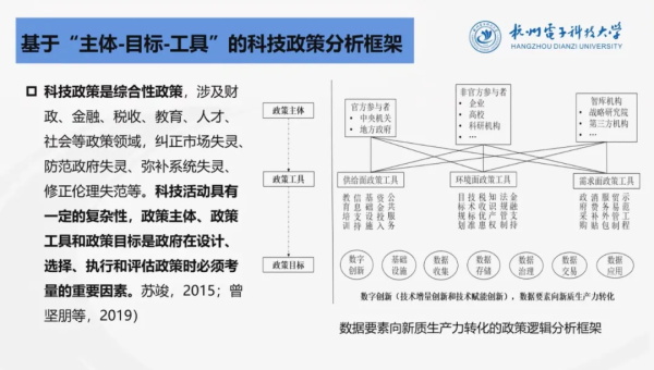 中國科教評(píng)價(jià)研究院講師岳曉旭博士采用基于“主體-工具-目標(biāo)”的科技政策邏輯分析框架,通過政策文獻(xiàn)量化分析方法,梳理了推動(dòng)數(shù)據(jù)要素向新質(zhì)生產(chǎn)力轉(zhuǎn)化的政策邏輯,并以“國家新一代人工智能開放創(chuàng)新平臺(tái)” 為例,展示科技政策如何推動(dòng)數(shù)據(jù)要素向新質(zhì)生產(chǎn)力轉(zhuǎn)化。