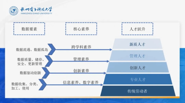 中國科教評(píng)價(jià)研究院副教授趙騰博士從數(shù)據(jù)要素視角出發(fā),立足馬克思勞動(dòng)過程理論,探討了數(shù)據(jù)賦能傳統(tǒng)生產(chǎn)力向新質(zhì)生產(chǎn)力轉(zhuǎn)變的內(nèi)在邏輯,構(gòu)建了數(shù)據(jù)要素下新質(zhì)人才核心素養(yǎng)發(fā)展體系,提出新質(zhì)人才培養(yǎng)的教育新范式。