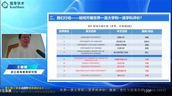王姍姍副院長(zhǎng)解讀世界一流大學(xué)評(píng)價(jià)結(jié)果