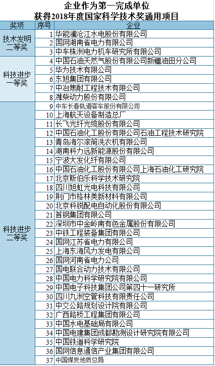 企業(yè)在2018年度國家科學(xué)技術(shù)獎榜單上相當(dāng)活躍。據(jù)澎湃新聞統(tǒng)計,三大獎通用項目的第一單位中共有37家企業(yè),占通用項目授獎總數(shù)的16.5%。