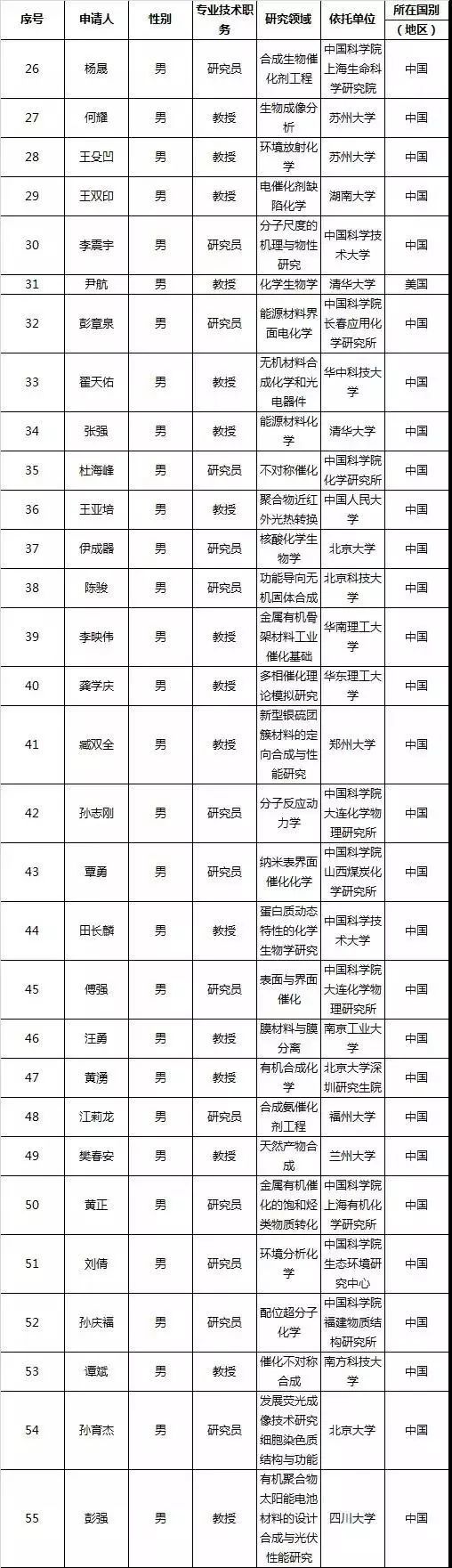 8 月 3 日,國家自然科學(xué)基金委員會正式公布了2018 年度國家杰出青年科學(xué)基金入選名單,200 名來自 112 家高校和科研機構(gòu)的研究者入選。 國家杰出青年科學(xué)基金(簡稱“杰青”)每年評選一次,未超過 45 歲、在基礎(chǔ)科學(xué)研究中已經(jīng)取得突出成績的青年科學(xué)家擁有申報資格。其豐厚的資助金額和激烈的競爭程度遠(yuǎn)高于面上項目、青年基金等基金委常規(guī)項目。2015 年至 2017 年,杰青項目平均資助率為 8.2%,平均單項資助金額均超過 340 萬人民幣。 在這份名單中其中清華大學(xué)入選人數(shù)最多,達(dá)到 18 人。北京大學(xué)入選 16 人,緊隨其后。中國科學(xué)院上海生命科學(xué)研究院入選 7 人,中國科學(xué)技術(shù)大學(xué)和上海交通大學(xué)各入選 5 人。浙江大學(xué)、南京大學(xué)、哈爾濱工業(yè)大學(xué)、華中科技大學(xué)、武漢大學(xué)、天津醫(yī)科大學(xué)各有 4 人入選。 2018 年國家杰出青年科學(xué)基金完整名單 (“科研圈”按照學(xué)科分類整理,如有疏漏,敬請指正) 數(shù)學(xué)物理科學(xué) ![]() 化學(xué)科學(xué)