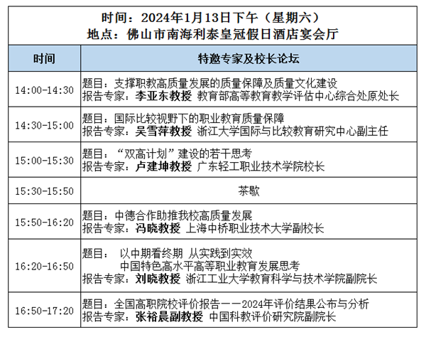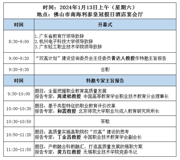 2024年1月14日下午14:00在南海利泰皇冠假日酒店大廳集合,乘坐大巴參觀廣東輕工職業(yè)技術(shù)學(xué)院南海校區(qū)。