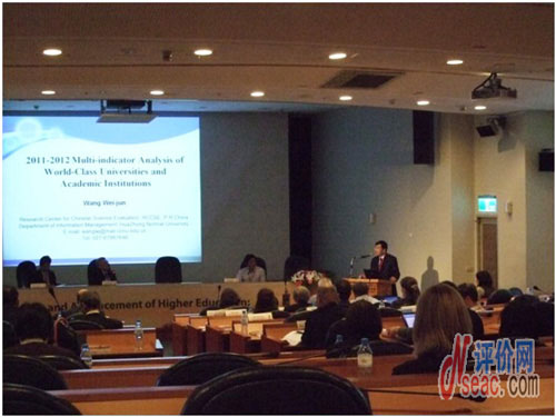 IREG6會(huì)議由JamilSalmi的演講拉開(kāi)序幕,Salmi是一名全球教育專(zhuān)家,前世界銀行高等教育協(xié)調(diào)員。會(huì)議一共開(kāi)展了8場(chǎng)不同主題的研討,圍繞著學(xué)術(shù)排名的方方面面展開(kāi),從創(chuàng)新到發(fā)展,從方法論的挑戰(zhàn)到改進(jìn),還有被排名機(jī)構(gòu)對(duì)于排名的反響和反饋。王偉軍教授代表中國(guó)科學(xué)評(píng)價(jià)研究中心在IREG會(huì)議上發(fā)言,為來(lái)自世界各地的大學(xué)排名領(lǐng)域的專(zhuān)業(yè)人士介紹了中心2012年世界一流大學(xué)和研究機(jī)構(gòu)的評(píng)價(jià)結(jié)果與指標(biāo)體系的報(bào)告,引起了與會(huì)代表的強(qiáng)烈興趣和關(guān)注。通過(guò)這次參會(huì)和發(fā)言,讓與會(huì)代表認(rèn)識(shí)了中國(guó)科學(xué)評(píng)價(jià)研究中心的工作和研究成果。