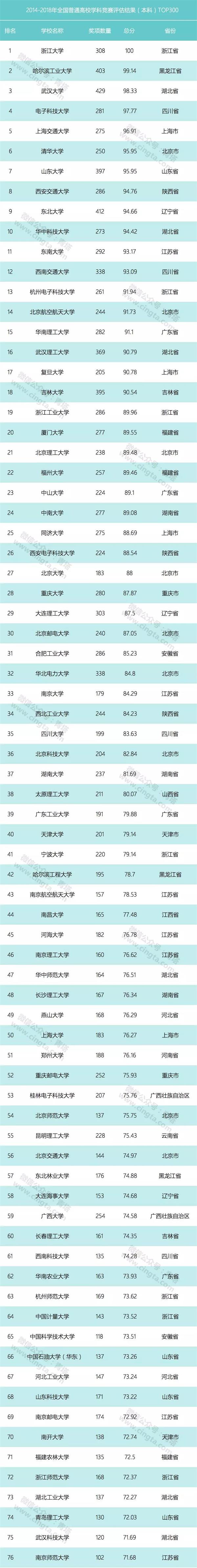 重磅:2014-2018年全國(guó)普通高校學(xué)科競(jìng)賽評(píng)估結(jié)果出爐!