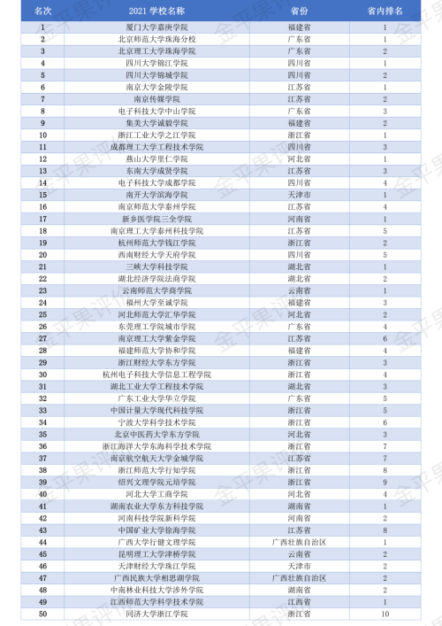 “金平果”2021年民辦、獨立院校排名揭曉!