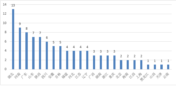 從民辦普通本科院校競爭力排名前100強來看,湖北13所數(shù)量最多,河南有9所高校進入100強。
