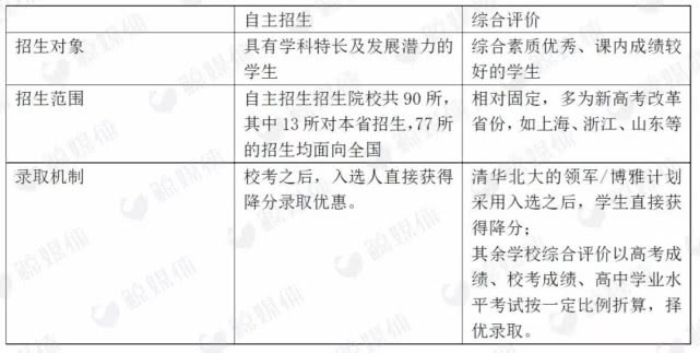 作為特殊類招生另一主要通道的自主招生,與綜合評價錄取相比,雖然在流程上都是經(jīng)過初審、校考、錄取的過程,但具體來說,還是有一定區(qū)別: