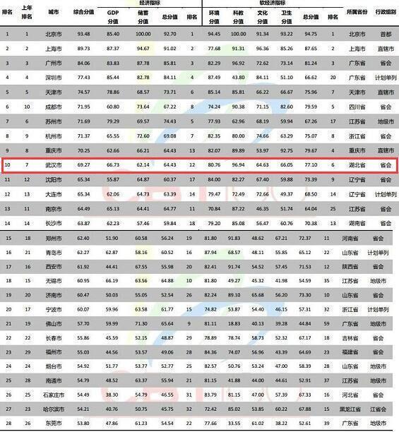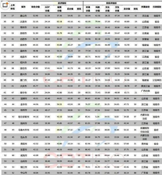 據(jù)悉,這份排行榜由上海權威研究機構(gòu)“華頓經(jīng)濟研究院”發(fā)布,百強城市排名由經(jīng)濟(GDP和居民儲蓄)和非經(jīng)濟(科教、文化、衛(wèi)生、生態(tài)環(huán)境等軟經(jīng)濟)兩大系列指標綜合而成。