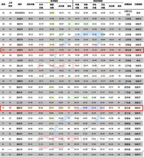 2016全國百強城市發(fā)布!湖北3個城市上榜。武漢列第10位,比上一年的第7位有所下滑。宜昌和襄陽分別列第63位和74位。