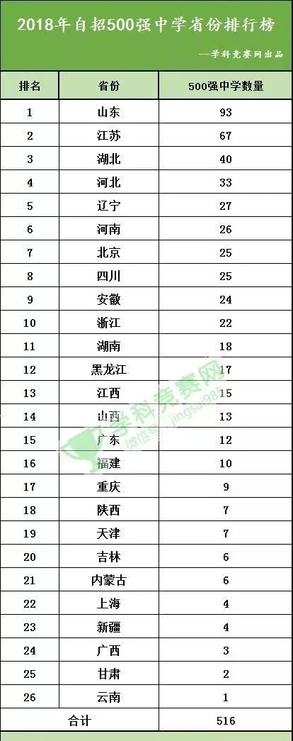 二500強(qiáng)高中省份排行榜