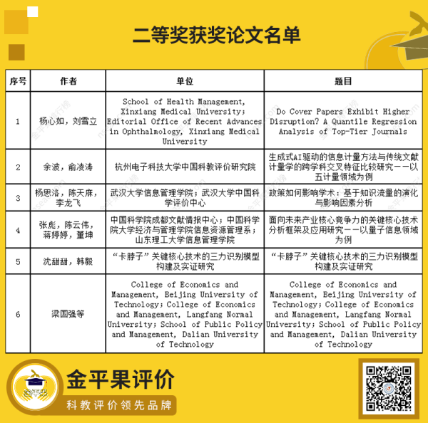 第十六屆全國科學(xué)計量學(xué)與科教評價研討會于2025年7月14-16日在蘭州舉辦,此次會議共產(chǎn)生16篇獲獎?wù)撐模渲卸泉?篇,三等獎10篇。具體名單見下表。
