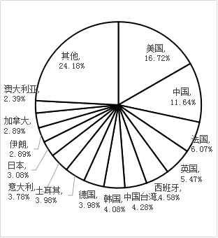 進(jìn)入ESI工程學(xué)學(xué)科排名的大學(xué)共有1004所。從國(guó)家或地區(qū)分布上來(lái)看,這些大學(xué)分別隸屬于美國(guó)、中國(guó)、法國(guó)、英國(guó)、西班牙、中國(guó)臺(tái)灣、韓國(guó)、德國(guó)、土耳其、意大利、日本伊朗、加拿大、澳大利亞、印度和巴西等69個(gè)國(guó)家或地區(qū)。這些大學(xué)的國(guó)家或地區(qū)分布情況如下圖所示。