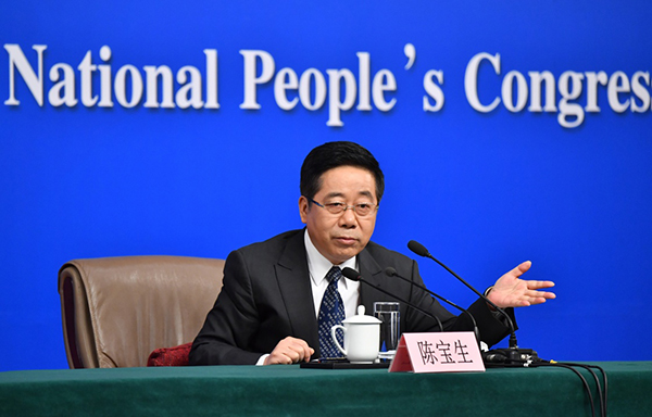 3月12日,十二屆全國人大五次會(huì)議新聞中心舉行記者會(huì),教育部部長陳寶生回答中外記者的提問。 新華社 圖