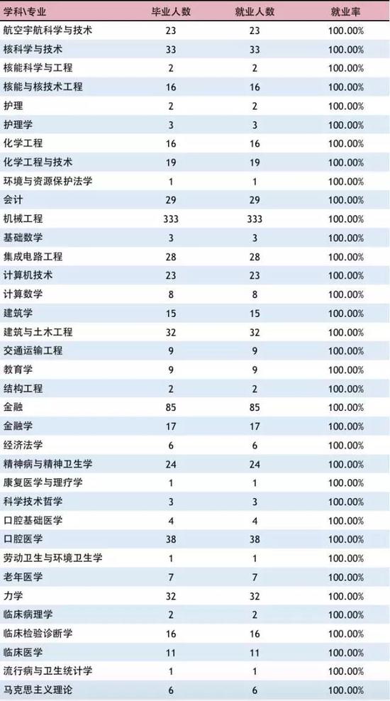 畢業(yè)生分布在32個院系(研究院、所)(以下簡稱為院系),有31個院系畢業(yè)生就業(yè)率達到95%以上,其中14個院系畢業(yè)生就業(yè)率達到100%。