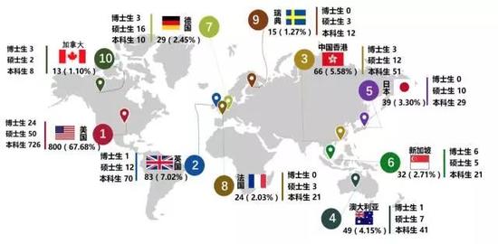 出國(境)深造目的地分布