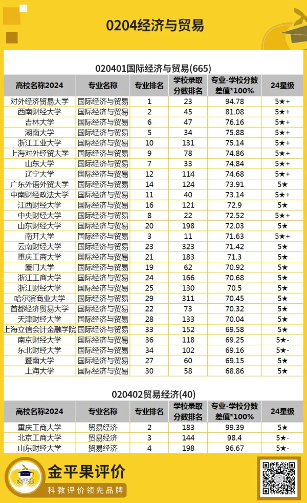 3、以下49個(gè)專業(yè)因開設(shè)學(xué)校數(shù)量較少,4星級(jí)以上全部納入:能源經(jīng)濟(jì)、商務(wù)經(jīng)濟(jì)學(xué)、精算學(xué)、信用管理、國(guó)際事務(wù)與國(guó)際關(guān)系、外交學(xué)、數(shù)字出版、國(guó)際新聞與傳播、世界史、天文學(xué)、大氣科學(xué)、寶石及材料工藝學(xué)、納米材料與技術(shù)、能源與環(huán)境系統(tǒng)工程、電子封裝技術(shù)、空間信息與數(shù)字技術(shù)、密碼科學(xué)與技術(shù)、鐵道工程、地理空間信息工程、地下水科學(xué)與工程、石油工程、智能采礦工程、非織造材料與工程、飛行技術(shù)、航海技術(shù)、交通設(shè)備與控制工程、輪機(jī)工程、智慧交通、飛行器控制與信息工程、航空航天工程、無(wú)人駕駛航空器系統(tǒng)工程、探測(cè)制導(dǎo)與控制技術(shù)、信息對(duì)抗技術(shù)、農(nóng)業(yè)智能裝備工程、土地整治工程、木材科學(xué)與工程、環(huán)保設(shè)備工程、資源環(huán)境科學(xué)、應(yīng)用生物科學(xué)、植物科學(xué)與技術(shù)、水土保持與荒漠化防治、森林保護(hù)、中醫(yī)養(yǎng)生學(xué)、藥物分析、康復(fù)物理治療、圖書館學(xué)、信息資源管理、質(zhì)量管理工程、中國(guó)畫。