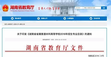 前不久,湖南省教育廳印發(fā)《湖南省省屬普通本科高等學(xué)校2018年招生專業(yè)目錄》。